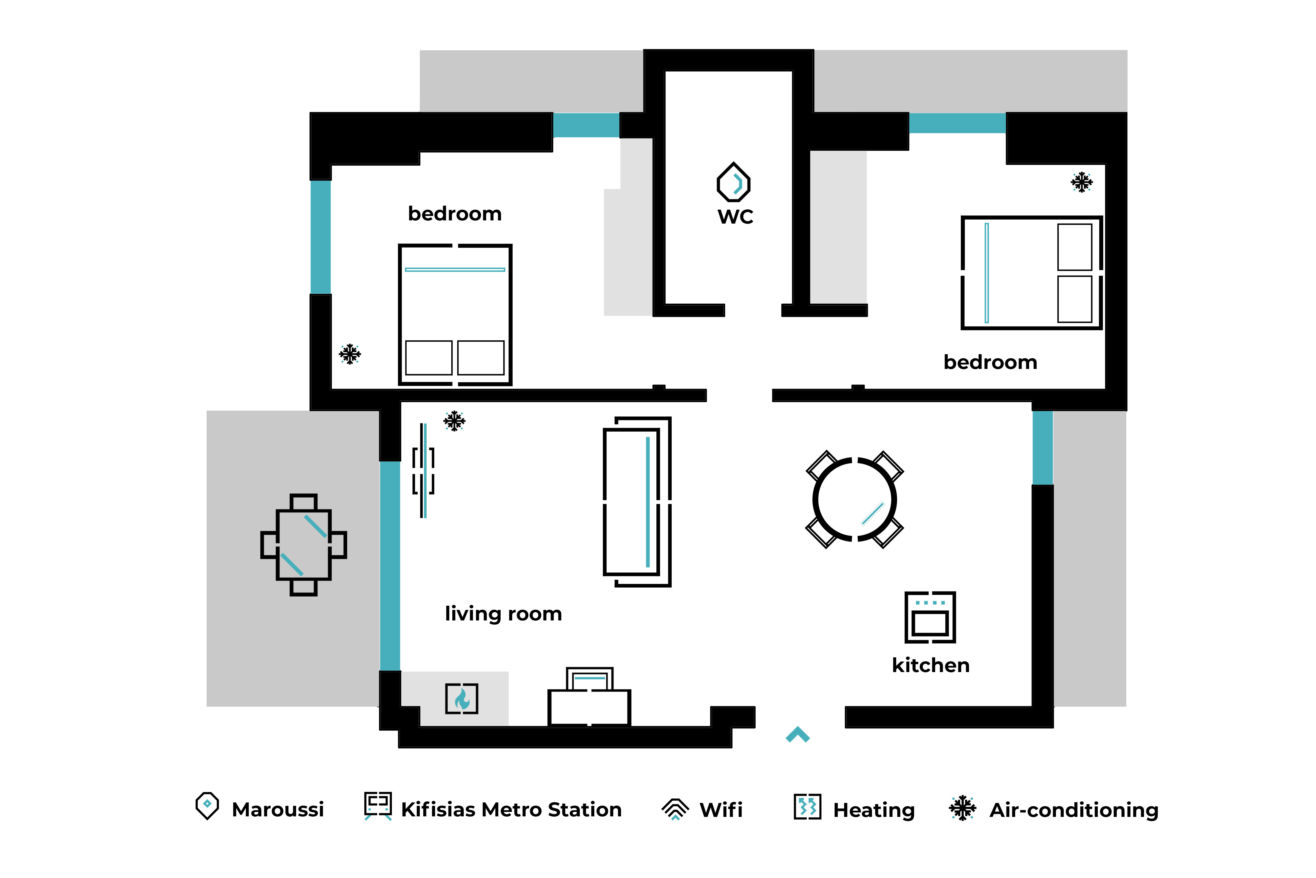 Enjoy the UPSTREET experience in a newly renovated, fully furnished apartment. Enter into a large, inviting living room featuring a plush sofa, a dining space, and a fully stocked kitchen, all designed to cater to your every requirement. The apartment also includes a modern bathroom, ensuring a stay that’s tailored just for you. Alternatively, step outside to immerse yourself in the rich narratives of history and contemporary life, where the essence of Greek culture—excellent cuisine, vibrant spirits, and warm social gatherings—comes alive!