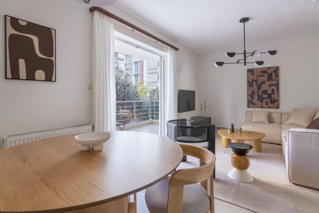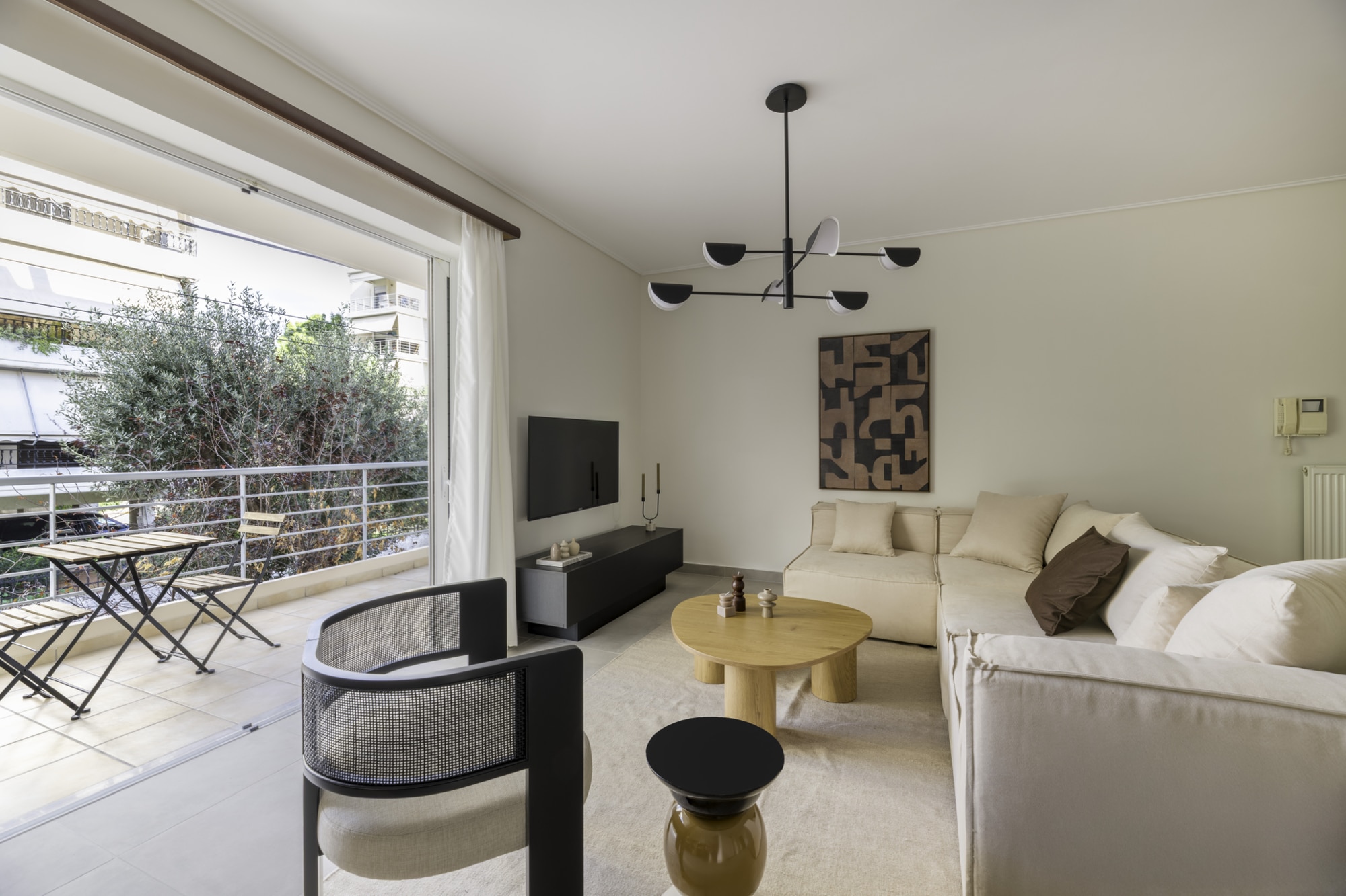 Enjoy the UPSTREET experience in a newly renovated, fully furnished apartment. Enter into a large, inviting living room featuring a plush sofa, a dining space, and a fully stocked kitchen, all designed to cater to your every requirement. Alternatively, step outside to immerse yourself in the rich narratives of history and contemporary life, where the essence of Greek culture—excellent cuisine, vibrant spirits, and warm social gatherings—comes alive!