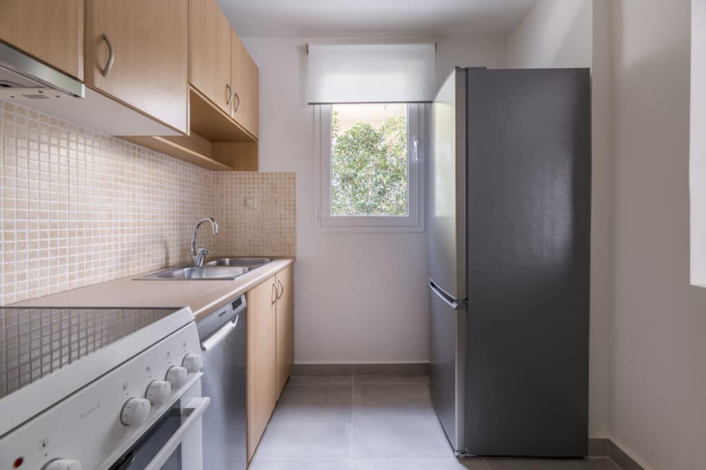 The apartment offers two comfortable bedrooms, each featuring a 160 cm queen-size bed. It comfortably accommodates up to 4 persons. A baby crib is available upon request for an additional fee.