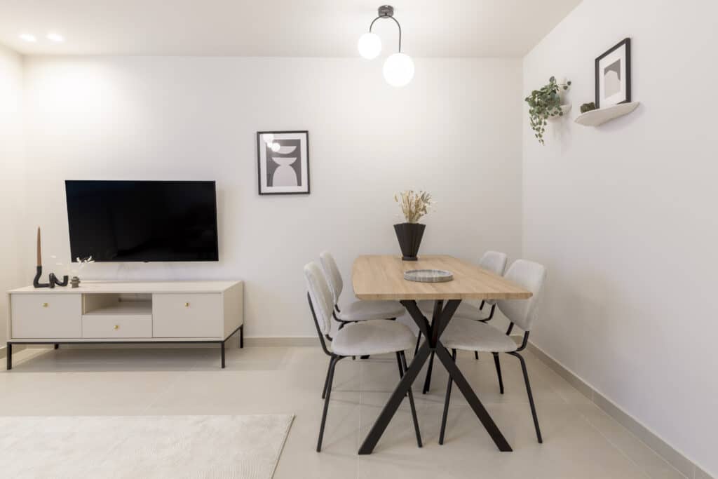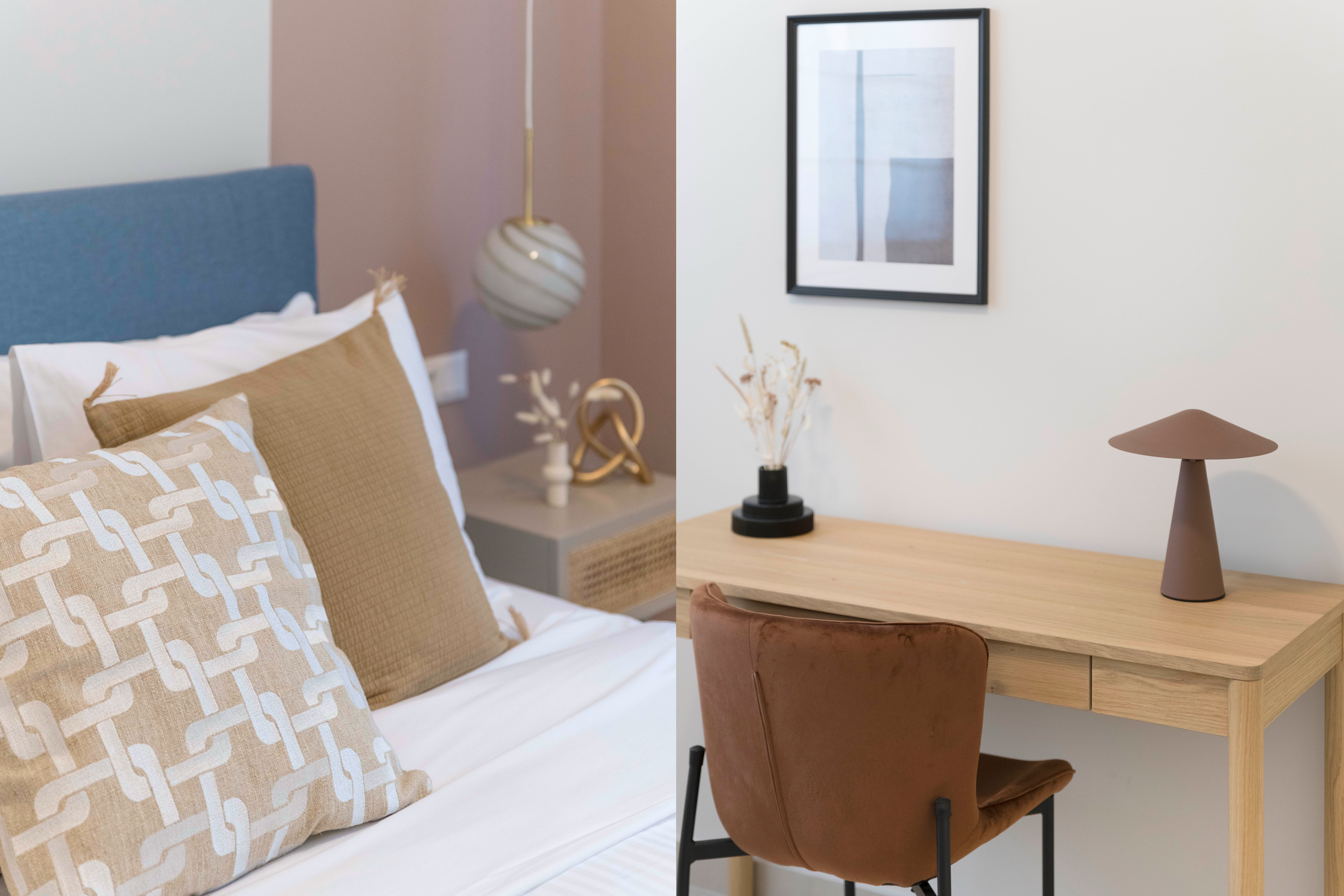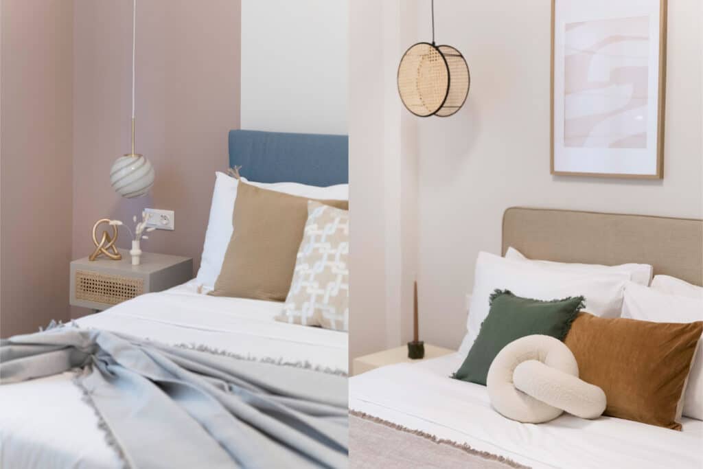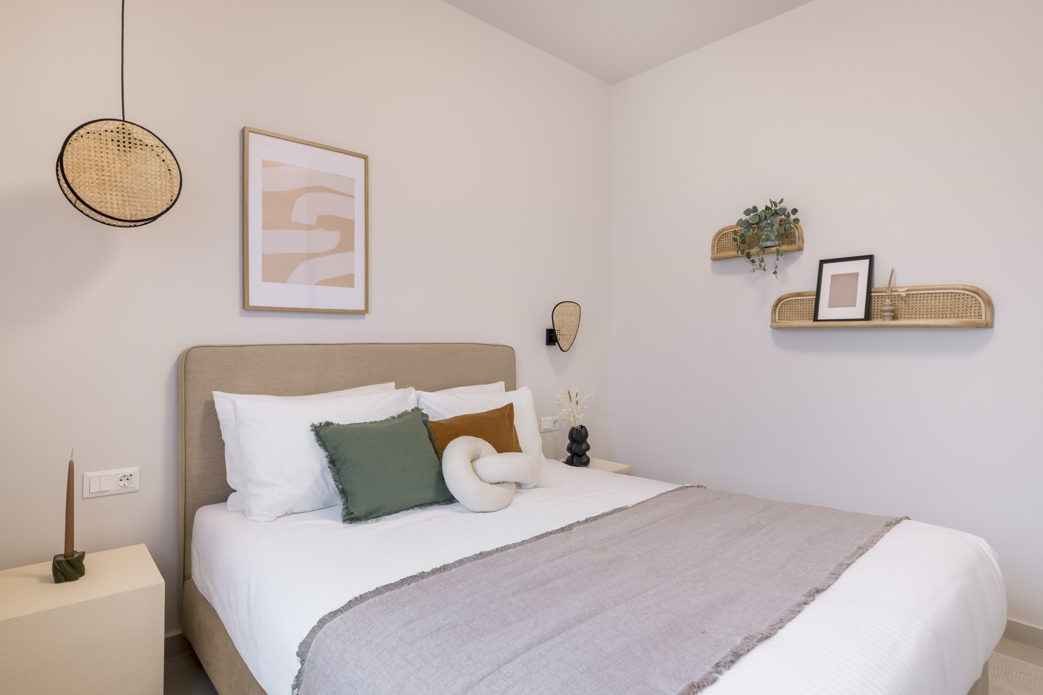Two bedrooms, each with a queen bed (160 cm).  A sofa-bed in the living room. The apartment can accommodate comfortably up to 6 persons. Baby Crib available upon request and with an extra charge.