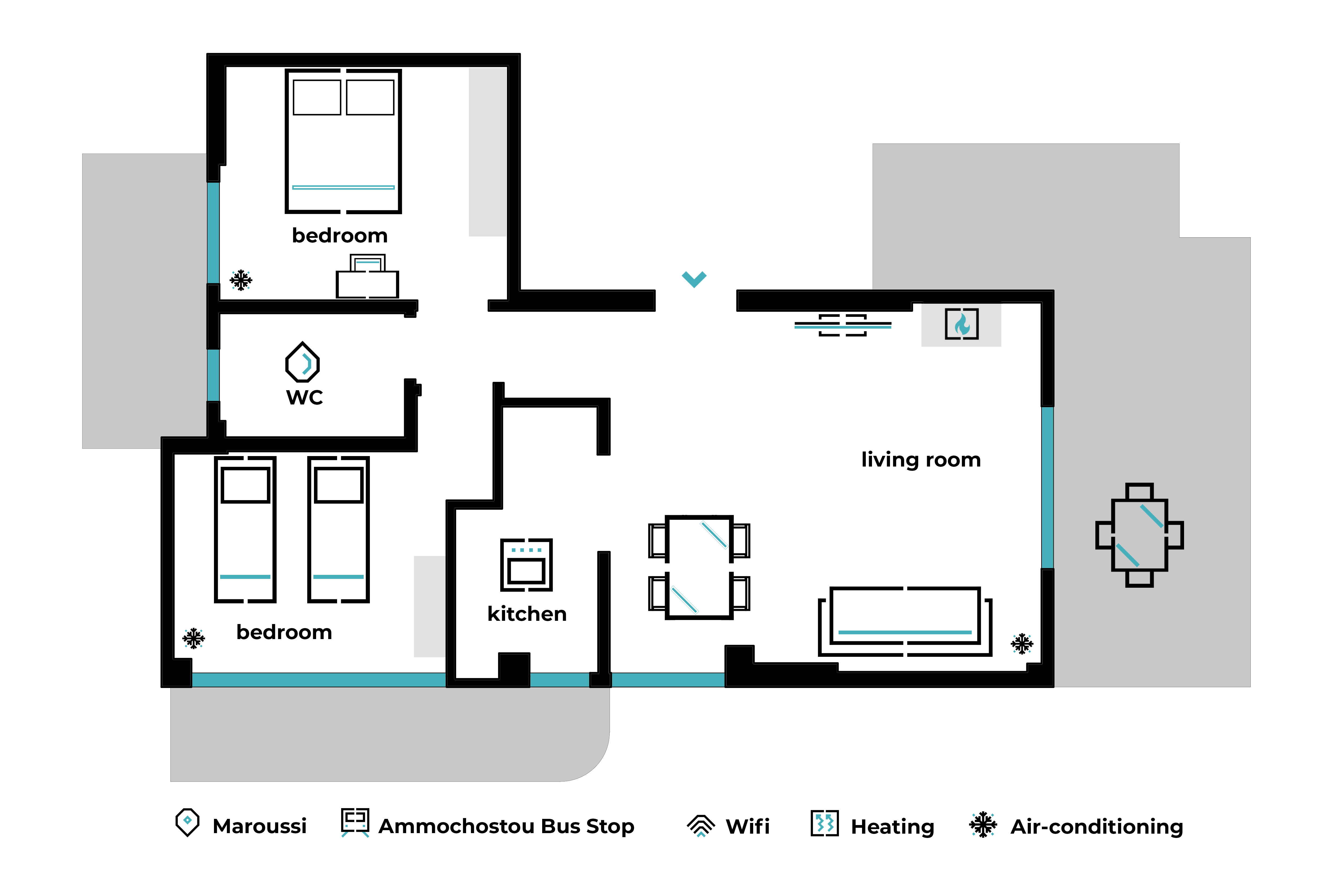 • The use of the fireplace is strictly prohibited to ensure environmental responsibility, guest safety, and property maintenance