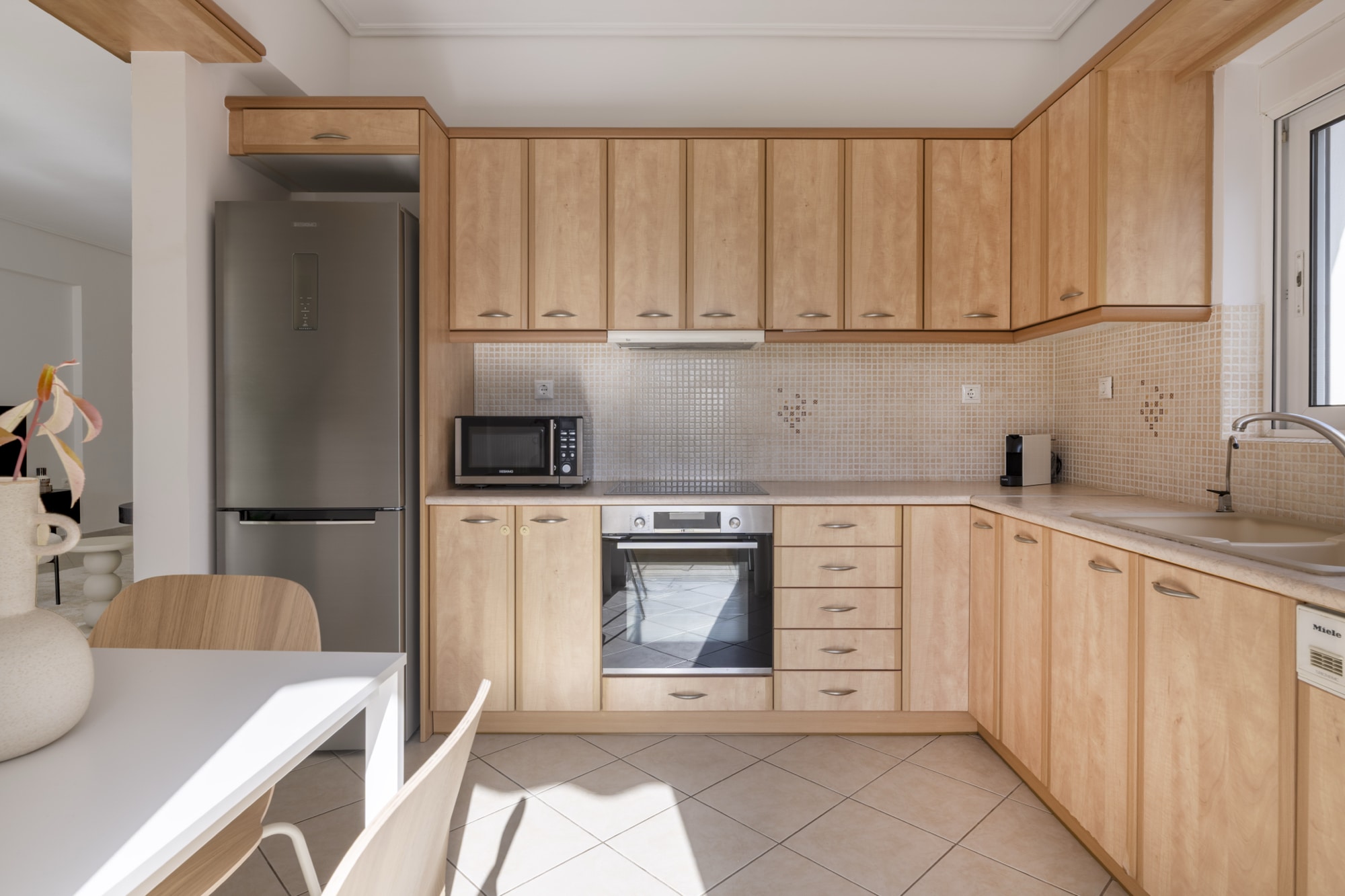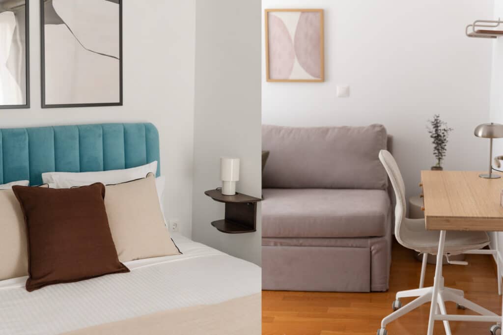 Enjoy the UPSTREET experience in a newly renovated, fully furnished apartment. Step in a renovated modern apartment with a spacious living room with a large, comfortable sofa, a dining area, and a fully equipped kitchen… or step out and explore the many cultural and culinary points of interest that lay just one short walk away.